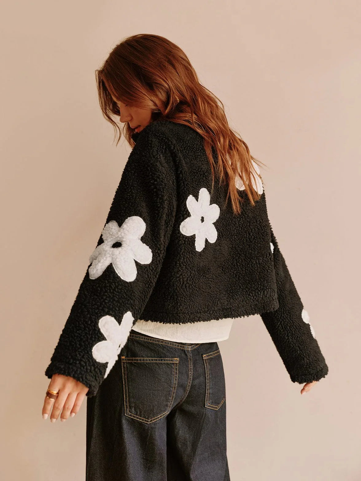 Lily-jackan kombinerar den varma komforten av fuskpäls med ett lekfullt blommönster som ger liv åt din outfit. En perfekt jacka för att ge en rolig och unik touch till din vintergarderob.