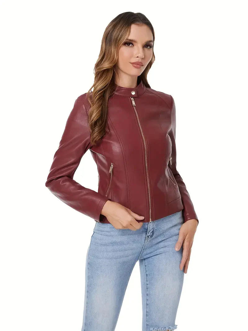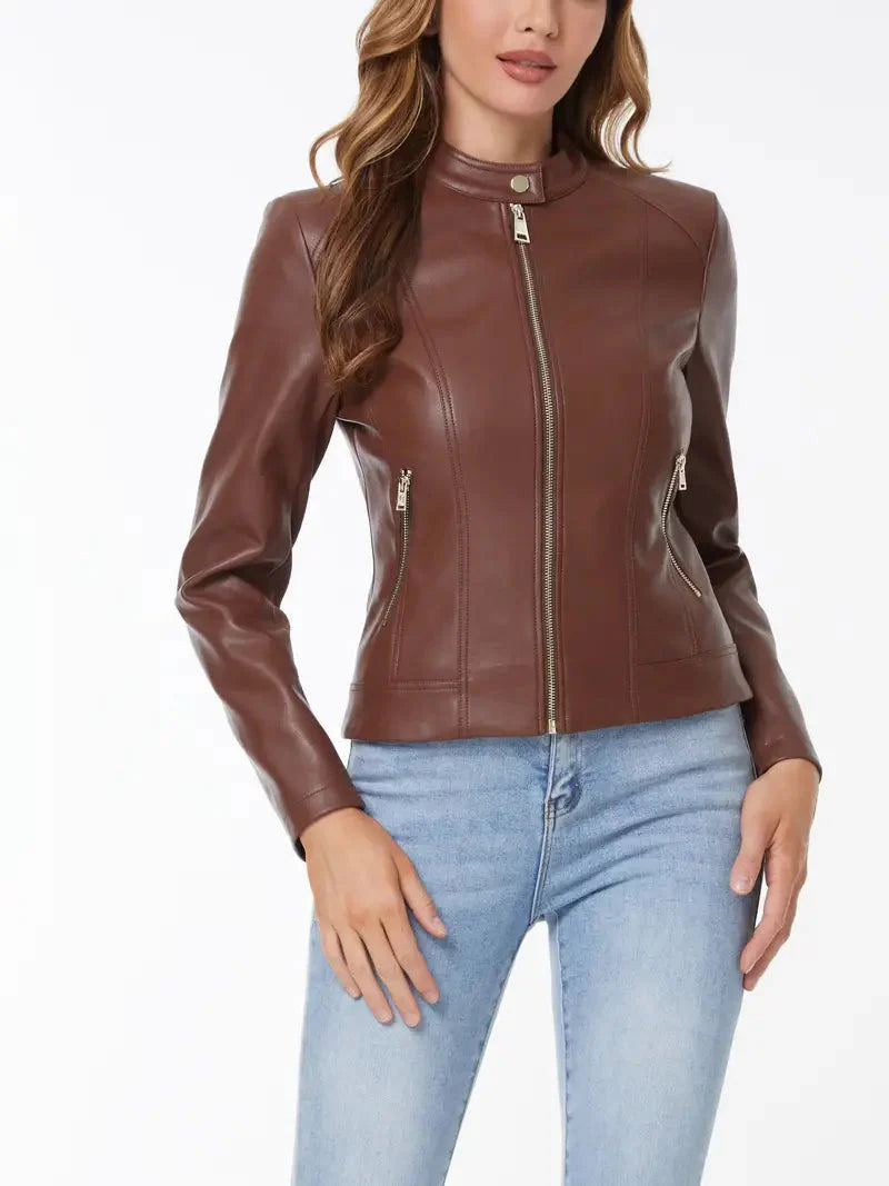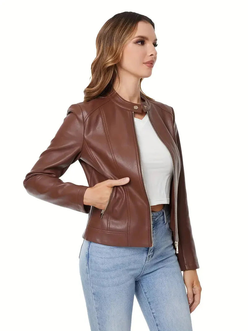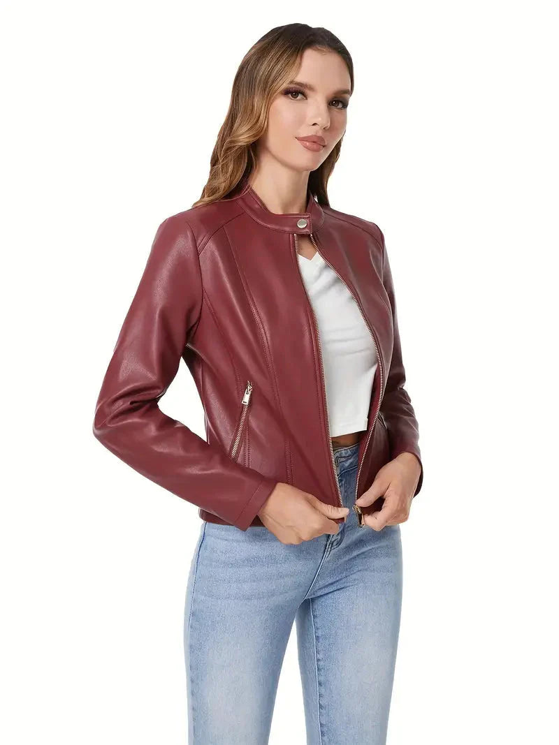 Vera | Kort Jacka i Läderlook med Dragkedja